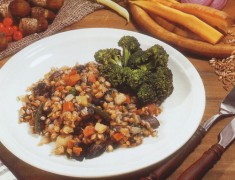 Na oleji zpěníme cibuli, přidáme houby nakrájené na tenké plátky a dusíme asi 10 minut. Zalijeme vývarem, přidáme trhanku z dvouzrnky, nastrouhanou mrkev, majoránku, kmín, saturejku a pepř. Společně dusíme na mírném ohni, dokud se všechna tekutina nevsákne. Odložíme ze sporáku a necháme vychladnout. V případě potřeby vychladlou směs zahustíme strouhankou, přemístíme do zapékací mísy a zalijeme rozkvedlanými vejci. Pomalu zapékáme při teplotě 200°C. Hned po vytažení z trouby posypeme strouhaným sýrem, podáváme s čerstvou zeleninou a kečupem.