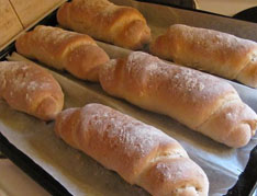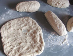 Těsto necháme asi hodinu kynout. Pak jej rozdělíme na 6 částí a každou vytáhneme rukama na placku a stočíme do tvaru rohlíku. Takto vytvarované rohlíky necháme ještě 30 minut kynout.
