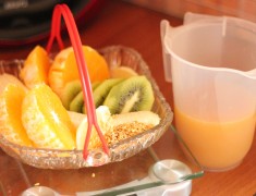Příprava je rychlá a snadná: Smícháme 200 ml jakéhokoliv Juice (já jsem použila broskvový, zde bych podotkla, že čím je kvalitnější tím je to lepší) s 1 polévkovou lžící lenu zlatého (kdo má rád může dát lžíce dvě). Toto důkladně rozmixujte. Přidejte mandarinky, kiwi, pomeranč, citron, banán a samozřejmě sáček zeleného ječmene a opět rozmixujte. Jen těžko najdete zdravější a lahodnější nápoj nejen na chřipkové období.