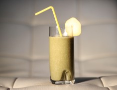 Teplé hruško-kokosové smoothie se zeleným ječmenem