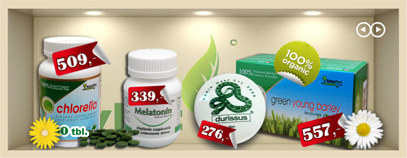 PoličkaPrvní, co vám určitě udeří do očí je polička s výrobky. Zde vám budeme vždy přinášet ty nejžhavější a nejzajímavější novinky ze světa zdraví. |
