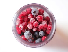 Nejdříve si nachystáme všechny ingredience. Pokud nemáme čerstvé borůvky nebo rybíz tak můžeme použít i zmrazené jak to bylo použito v tomto receptu. Do mixéru si dáme pomerančové juice a postupně přidáváme všechny ingredience a vše důkladně rozmixujeme.