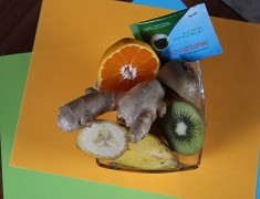 Pomeranč, kiwi, zázvor a banán si oloupeme. Dáme do mixéru a společně s brusinkovou šťávou a zeleným ječmenem umixujeme. Toto smoothie je jedinečné svou kiwi-zázvorovou chutí.