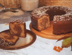 Rostlinný tuk vyšleháme, postupně přidáme moučkový a vanilkový cukr, žloutky a citrónovou šťávu. Přimícháme celozrnnou mouku z dvouzrnky smíchanou s kypřícím práškem, mleté ořechy a směs sušeného ovoce a oříšků, 4 lžíce mléka a všechno spolu dobře promícháme. 2/3 těsta dáme do vymaštěné a strouhankou vysypané bábovkové formy. Do zbylého těsta přidáme kakao, skořici, 2 lžíce mléka, zamícháme a navrstvíme na světlé těsto. Spirálovými pohyby vidličkou přes těsto vytvoříme mramorování tmavého a světlého těsta. Pečeme pomalu při teplotě 180°C asi 40-45 minut. Bábovku necháme vychladnout, opatrně vyklopíme a povrch polijeme oříškovou nebo čokoládovou polevou a posypeme amarantovými pukanci nebo sezamem.